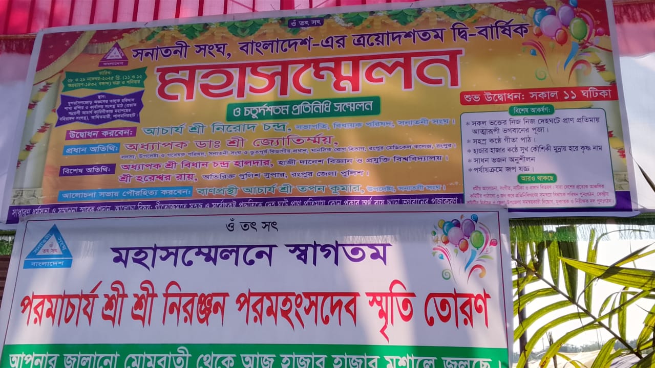 লালমনিরহাটের তালুহরিদাস সারপুকুর ইউনিয়নের মন্ডলটারীতে আজ উৎসবমুখর পরিবেশে অনুষ্ঠিত হলো সনাতনী সংঘ, বাংলাদেশের ত্রয়োদশ দ্বি-বার্ষিক মহাসম্মেলন ও চূড়ান্ত প্রতিনিধিসম্মেলন। সকাল ১১টায় ধর্মীয় আনুষ্ঠানিকতার মধ্য দিয়ে মহাসম্মেলনের শুভ উদ্বোধন ঘোষণা করা হয়। পুরো অনুষ্ঠানস্থলজুড়ে ছিল বর্ণিল সাজসজ্জা, ধর্মীয় আবহ এবং উৎসবের প্রাণচাঞ্চল্য।