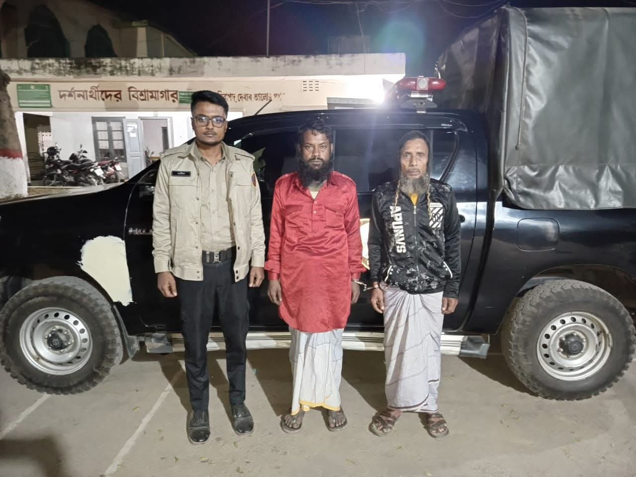 রবিবার (১৪ ডিসেম্বর) বিকেল সাড়ে তিনটার দিকে শেরপুর উপজেলার ছোট ফুলবাড়ী এলাকায়। ডিএনসি বগুড়ার ‘ক’ সার্কেলের একটি আভিযানিক দল শেরপুর উপজেলা নির্বাহী অফিসার ও বিজ্ঞ এক্সিকিউটিভ ম্যাজিস্ট্রেট এম. আব্দুল্লাহ ইবনে মাসুদ আহমেদ-এর নেতৃত্বে মোবাইল কোর্ট পরিচালনা করে এ অভিযান চালায়।গ্রেপ্তারকৃতরা হলেন, নবির হোসেন (৩৭) ও রুহুল আমীন (৬৯)।ভ্রাম্যমাণ আদালতে তাদেরকে তিন মাসের বিনাশ্রম কারাদণ্ড ও ১০০ টাকা অর্থদণ্ড প্রদান করেন। একই সঙ্গে জব্দকৃত আলামত ঘটনাস্থলেই ধ্বংস করা হয়।এ বিষয়ে উপজেলা নির্বাহী অফিসার ও নির্বাহী ম্যাজিস্ট্রেট এম. আব্দুল্লাহ ইবনে মাসুদ আহমেদ বলেন,“মাদক সমাজের জন্য ভয়াবহ অভিশাপ। বিশেষ করে তরুণ প্রজন্মকে রক্ষা করতে মাদকের বিরুদ্ধে জিরো টলারেন্স নীতি বাস্তবায়ন করা হচ্ছে। আইন অমান্যকারীদের বিরুদ্ধে ভবিষ্যতেও কঠোর ব্যবস্থা নেওয়া হবে।”ডিএনসি বগুড়ার জেলার উপপরিচালক জিললুর রহমান বলেন,“মাদকদ্রব্য নিয়ন্ত্রণ অধিদপ্তর বগুড়া জেলার প্রতিটি উপজেলায় নিয়মিত অভিযান পরিচালনা করছে। মাদক কারবারি ও মাদকসেবীদের বিরুদ্ধে কোনো ছাড় নেই। প্রশাসন ও জনগণের সম্মিলিত সহযোগিতায় আমরা মাদকমুক্ত বাংলাদেশ গড়ে তুলতে বদ্ধপরিকর।”তিনি আরও বলেন,“মাদকের বিরুদ্ধে সামাজিক প্রতিরোধ গড়ে তুলতে সবাইকে এগিয়ে আসতে হবে। তথ্য দিলে পরিচয় গোপন রেখে ব্যবস্থা নেওয়া হবে।”ডিএনসি সূত্র জানায়, মাদকবিরোধী এ ধরনের অভিযান ভবিষ্যতেও অব্যাহত থাকবে।