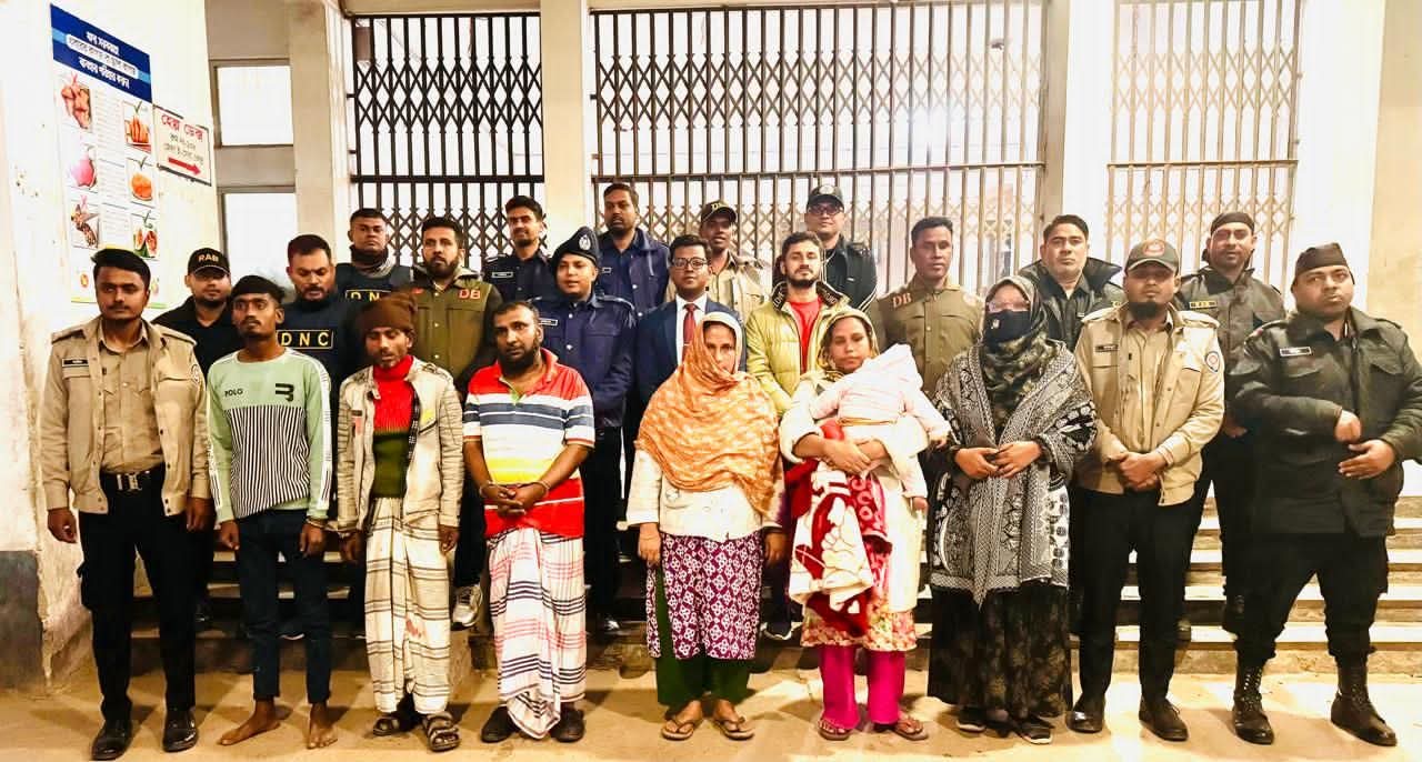 গ্রেপ্তারকৃতরা হলেন, তহমিনা বেগম ওরফে টুনি (৪০), মো. রফিকুল ইসলাম (৪৫), মোছা. শিল্পী বেগম (৪০), মো. রিপন ইসলাম (৩৮), মো. অসিম (২০) এবং মো. আহসান উল আলম (৩২)।আটককৃতদের মধ্যে তহমিনা বেগম, রফিকুল ইসলাম ও শিল্পী বেগমের বিরুদ্ধে বগুড়া সদর থানায় নিয়মিত মাদক মামলা দায়ের করা হয়েছে।অপরদিকে জেলা ম্যাজিস্ট্রেট কার্যালয়ের সহকারী কমিশনার ও বিজ্ঞ এক্সিকিউটিভ ম্যাজিস্ট্রেট তাসওয়ার তানজামুল হক-এর নেতৃত্বে অভিযান চলাকালে ভ্রাম্যমাণ আদালত পরিচালনা করা হয়। ভ্রাম্যমাণ আদালতে রিপন ইসলামকে তিন মাসের বিনাশ্রম কারাদণ্ড ও ৫০ টাকা অর্থদণ্ড, মো. অসিমকে এক মাসের বিনাশ্রম কারাদণ্ড ও ৫০ টাকা অর্থদণ্ড এবং মো. আহসান উল আলমকে সাত দিনের বিনাশ্রম কারাদণ্ড ও ১০০ টাকা অর্থদণ্ড প্রদান করেন সহকারী কমিশনার ও বিজ্ঞ এক্সিকিউটিভ ম্যাজিস্ট্রেট তাসওয়ার তানজামুল হক।ভ্রাম্যমাণ আদালতের আদেশে উদ্ধারকৃত মাদক ঘটনাস্থলেই ধ্বংস করা হয়।আইনশৃঙ্খলা বাহিনীর কর্মকর্তারা জানান, মাদকবিরোধী এ ধরনের যৌথ অভিযান অব্যাহত থাকবে এবং বগুড়াকে মাদকমুক্ত করতে কঠোর অবস্থান গ্রহণ করা হয়েছে।