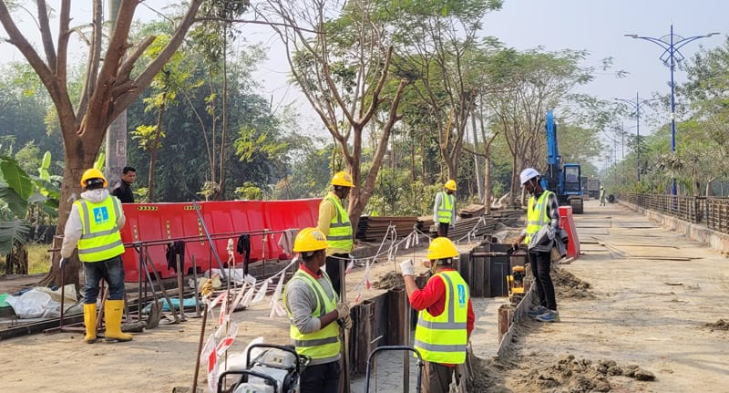 রাজশাহী পানি সরবরাহ ও পয়ঃনিষ্কাশন কর্তৃপক্ষের (ওয়াসা) নতুন পাইপলাইন স্থাপনের কাজের জন্য এবার শতাধিক গাছের ডালপালা কেটে ফেলা হচ্ছে। নগরের বিমানচত্ত্বর-বিহাস সড়কের একপাশের এই গাছগুলোর বেশিরভাগই কৃষ্ণচূড়া। গ্রীষ্ণের কাঠফাটা রোদের মধ্যে গাছগুলো এ সড়কের পথচারীদের ছায়া দেয়। চোখ জুড়ানো কৃষ্ণচূড়া ভুলিয়ে দেয় ক্লান্তি।রাজশাহী নগরের পানির চাহিদা মেটাতে শহর থেকে ২৬ কিলোমিটার দূরে গোদাগাড়ী উপজেলার সারেংপুরে ট্রিটমেন্ট প্লান্ট বসানো হচ্ছে। সেখান থেকে পদ্মার পরিশোধিত পানি আসবে শহরে। প্রায় ৩ হাজার কোটি টাকার এ মেগাপ্রকল্পে শহরের ভেতরেও ৪১ কিলোমিটার পাইপলাইন সম্প্রসারণ করা হচ্ছে। এ প্রকল্পের জন্য রাজশাহী-চাঁপাইনবাবগঞ্জ মহাসড়কের এক পাশে গাছ কেটে সম্প্রতি সমালোচনার মুখে পড়ে ওয়াসা।এবার রাজশাহী নগরের বিমান চত্ত্বর থেকে বিহাস সড়কের একপাশে শতাধিক গাছের ডালপালা কাটা পড়ছে। চার লেনের দৃষ্টিনন্দন এ সড়কটির দুপাশে রয়েছে কৃষ্ণচূড়াসহ নানা প্রজাতির গাছ। রাজশাহী সিটি করপোরেশন (রাসিক) গাছগুলোর পরিচর্যা করে। সড়কের একপাশ দিয়ে ওয়াসা পাইপলাইন বসাচ্ছে। এ জন্য ফুটপাতে থাকা গাছের ডালপালা কাটা পড়ছে।সোমবার দুপুরে নাদের হাজির মোড় এলাকায় গিয়ে দেখা যায়, সড়কের কিছু অংশে এক দিকে যানবাহন চলাচল বন্ধ রাখা হয়েছে। এক্সকেভেটর যন্ত্র দিয়ে সড়ক খননের পর ক্রেন দিয়ে পাইপ বসানো হচ্ছে। এক্সকেভেটর ও ক্রেন চালাতে গিয়ে গাছের ডাল ভেঙে যাচ্ছে। তাই গাছগুলোর সড়কের দিকে থাকা ডালগুলো কেটে দেওয়া হচ্ছে। স্থানীয় লোকজন সেই ডাল নিয়ে যাচ্ছেন। অর্ধেক ডালপালা কাটা অবস্থায় ক্ষত নিয়ে কৃষ্ণচূড়া গাছগুলো দাঁড়িয়ে আছে। ওই এলাকায় ৮৬টি কৃষ্ণচূড়া গাছে লাল ও সাদা রং দিয়ে নাম্বারিং করে রাখা দেখা গেছে।স্থানীয় বাসিন্দা জুলফিকার আলী বলেন, ‘পরিকল্পনার অভাব। যেভাবে গাছের ডাল কেটে ফেলা হচ্ছে তাতে গাছগুলো মারা যাওয়ার আশঙ্কা আছে। সড়ক খুঁড়েই পাইপ বসানো হচ্ছে। আর দুই ফুট ফুটপাতের পাশ থেকে সরে পাইপ বসালে গাছগুলো এভাবে নষ্ট হতো না।’সাইটে দায়িত্বে থাকা একজন প্রকৌশলী বলেন, ‘আমরা কোনো গাছ কাটছি না। এক্সকেভেটর ও ক্রেন চালাতে গেলে কিছু ডাল ভেঙে যাচ্ছে। তখন সেগুলো কেটে ফেলতে হচ্ছে।’
