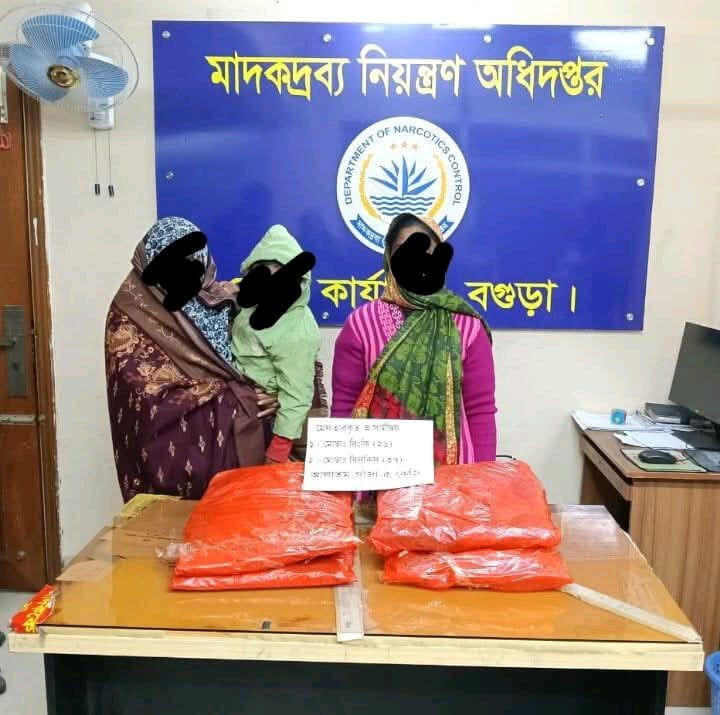 এ সময় দুই নারীর দেহ তল্লাশি চালিয়ে তাদের হেফাজত থেকে মোট পাঁচ কেজি গাঁজা উদ্ধার করা হয়।মাদকদ্রব্য নিয়ন্ত্রণ অধিদপ্তর (ডিএনসি) বগুড়া জেলার উপপরিচালক জিললুর রহমান বলেন, বর্তমানে মাদক চক্রগুলো নারী ও শিশুদের পারিবারিক পরিচয়কে ব্যবহার করে মাদক পরিবহন করছে, যা অত্যন্ত উদ্বেগজনক।