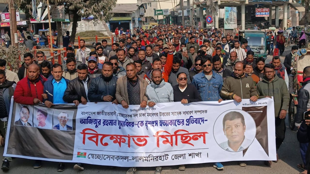 লালমনিরহাটে বাংলাদেশ জাতীয়তাবাদী স্বেচ্ছাসেবক দল ঢাকা মহানগর উত্তরের সাবেক সাধারণ সম্পাদক মোঃ আজিজুর রহমান মোসাব্বিরকে নৃশংসভাবে হত্যার প্রতিবাদে বিক্ষোভ মিছিল ও সমাবেশ অনুষ্ঠিত হয়েছে।