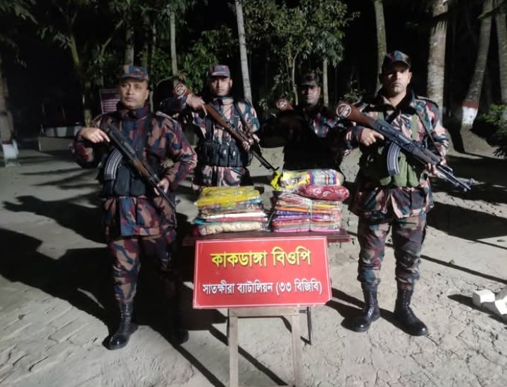 কাকডাঙ্গা বিওপির বিশেষ আভিযানিক দল মেইন পিলার ১৩/৩ এস এর ৬ আরবি হতে আনুমানিক ৩০০ গজ বাংলাদেশের অভ্যন্তরে কলারোয়া থানাধীন গেড়াখালী নামক স্থান হতে ৮০,৫০০ টাকা মূল্যের ভারতীয় শাড়ি আটক করে।