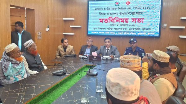 মোঃগোলাম মোস্তফা,ভূরুঙ্গামারী (কুড়িগ্রাম) প্রতিনিধি: কুড়িগ্রামের ভুরুঙ্গামারীতে ত্রয়োদশ জাতীয় সংসদ নির্বাচন ও গণভোট-২০২৬ উপলক্ষে ইমাম ও আলেম-ওলামাগণের সঙ্গে উপজেলা প্রশাসনের উদ্যোগে এক মতবিনিময় সভা অনুষ্ঠিত হয়েছে। মঙ্গলবার (২৭ জানুয়ারি) উপজেলা পরিষদ ...বিস্তারিত পড়ুন