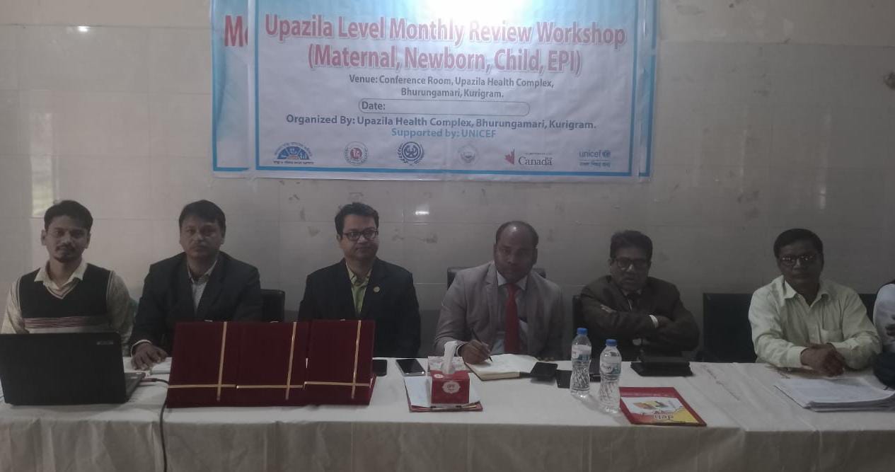 UNICEF-এর RIMEN Project বাস্তবায়ন অগ্রগতি পর্যালোচনা উপলক্ষে ভূরুঙ্গামারী উপজেলা স্বাস্থ্য কমপ্লেক্স-এ “Upazila Level Monthly Review Workshop (Maternal, Newborn, Child, EPI)” শীর্ষক মাসিক পর্যালোচনা সভা অনুষ্ঠিত হয়েছে। উপজেলা স্বাস্থ্য কমপ্লেক্সের সভাকক্ষে আয়োজিত এ কর্মশালায় মাতৃস্বাস্থ্য, নবজাতক ও শিশুসেবা এবং টিকাদান কার্যক্রমের অগ্রগতি, চ্যালেঞ্জ ও করণীয় নিয়ে বিস্তারিত আলোচনা করা হয়।