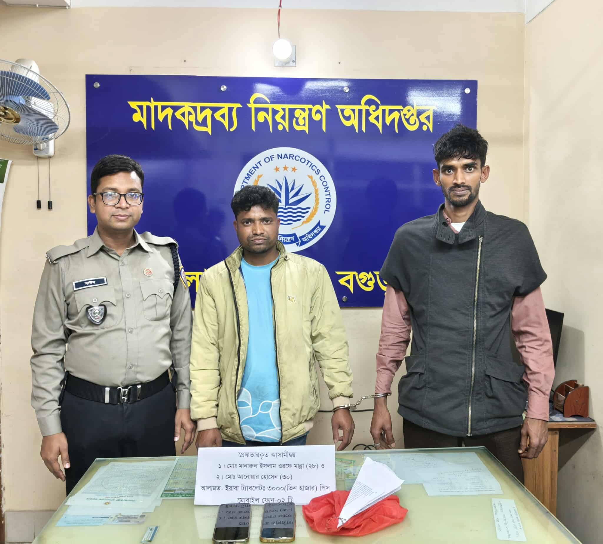 বোনগাঁও কালিতলা গ্রামের ফরিজ উদ্দিনের ছেলে মানারুল ইসলাম ওরফে মান্না (২৮) ও একই থানাধীন মেদনী সাগর ফজুপাড়া গ্রামের মৃত নুর ইসলামের ছেলে