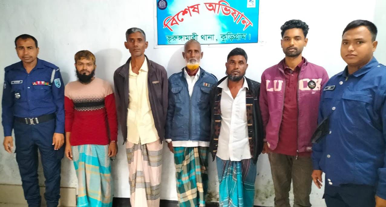 ভূরুঙ্গামারী থানার পুলিশ পৃথক দুটি মামলার আসামিসহ মোট সাতজনকে পুলিশ এসকোর্টের মাধ্যমে আদালতে প্রেরণ করেছে।পুলিশ সূত্রে জানা যায়, এনজিআর ৩৪/২৫ (কুড়ি) ও এনজিআর ২৪/২৫ (কুড়ি) মামলার ছয়জন আসামিকে সরকারি প্রিজন ভ্যানে করে পুলিশ পাহারায় আদালতে পাঠানো হয়। তারা হলেন— মো. বিদ্যুত হোসেন (২৩), পিতা: মো. আব্দুর রাজ্জাক; মো. নুর ইসলাম (২৭), পিতা: মো. কুতুব উদ্দিন; মো. আব্দুর রাজ্জাক (৪৭); মো. আমজাদ হোসেন (৪৫), উভয়ের পিতা মৃত মেরাজ উদ্দিন; মোছা. নুর নাহার বেগম (৩৮), স্বামী: মো. আব্দুর রাজ্জাক এবং মোছা. আমেনা বেগম (২৫), স্বামী: মো. নুর ইসলাম। তাদের সবার বাড়ি দক্ষিণ ছাট গোপালপুর গ্রামে।