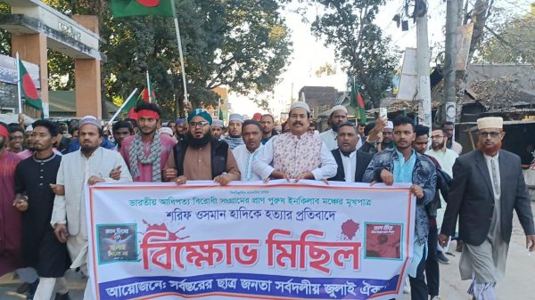 ভূরুঙ্গামারীতে হাদির হত্যার প্রতিবাদ ও ভারতীয় আগ্রাসনের বিরুদ্ধে বিক্ষোভ মোঃগোলাম মোস্তফা ভূরুঙ্গামারী (কুড়িগ্রাম) প্রতিনিধি। কুড়িগ্রামের ভূরুঙ্গামারীতে ইনকিলাব মঞ্চের মুখপাত্র শরিফ ওসমান হাদির হত্যাকারীদের দ্রুত গ্রেপ্তার ও ফাঁসির দাবিতে এবং