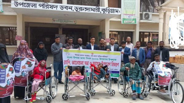 ভূরুঙ্গামারীতে বাংলা ইশারা ভাষা দিবসে সুবর্ণ নাগরিকদের মাঝে হুইলচেয়ার ও হিয়ারিং এইড বিতরণ